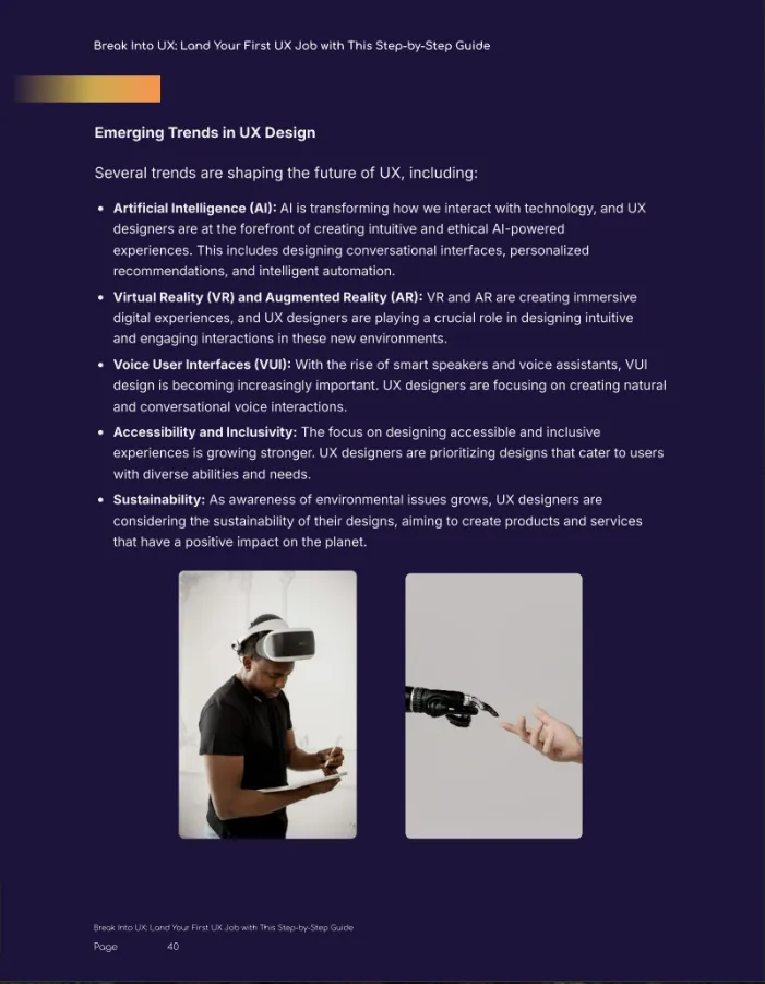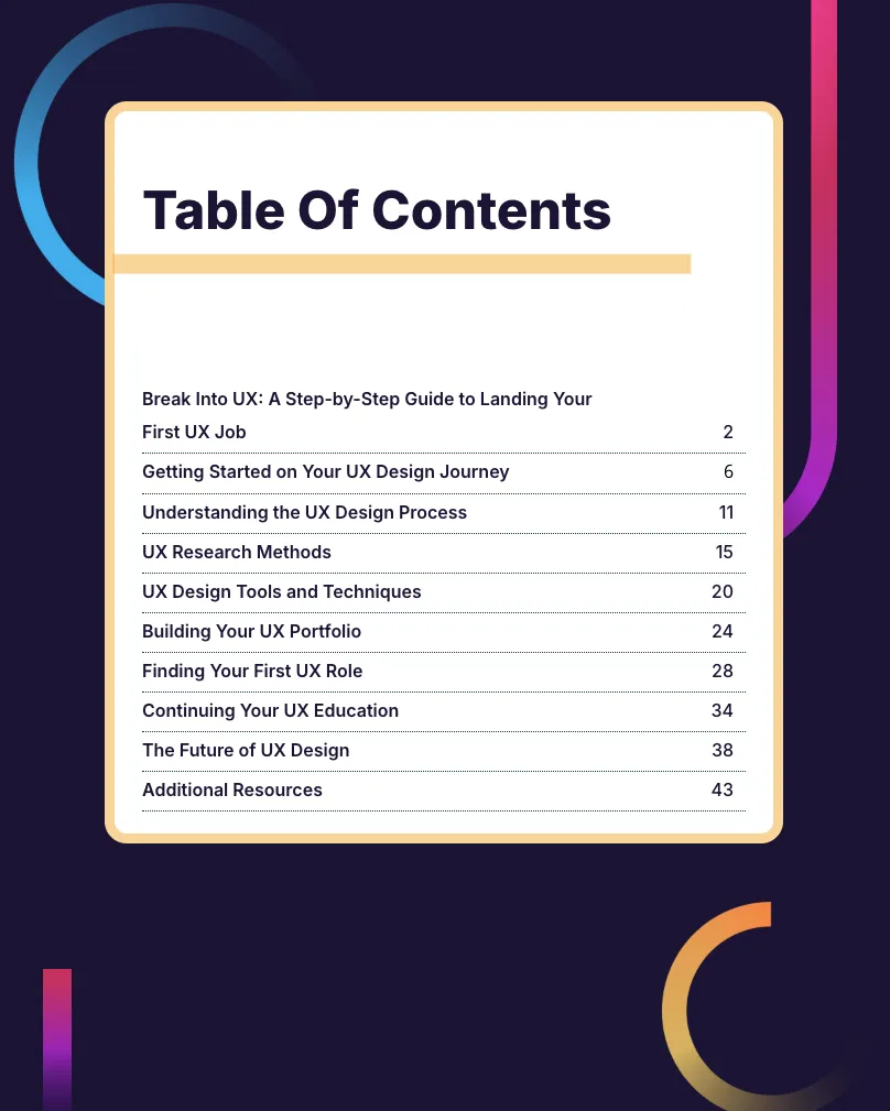 Break Into UX: The Beginner’s Roadmap A step-by-step tactical roadmap for landing your first job. Master the Design Thinking process and understand how professionals structure real-world portfolios. (Value: $47)