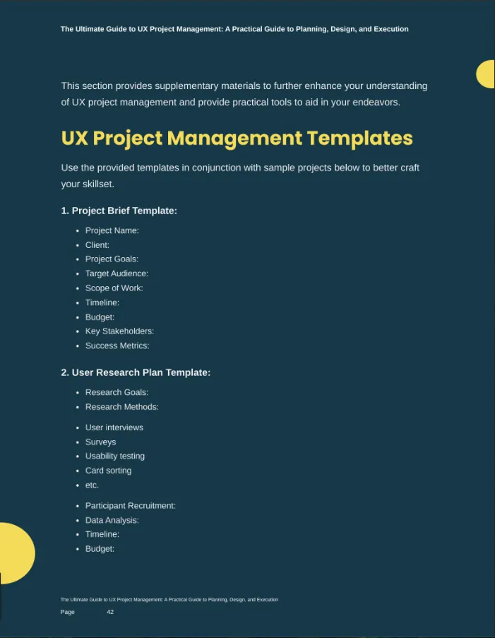 The Ultimate Guide to UX Project Management Learn to manage high-stakes enterprise software. Includes the exact Project Brief Template and User Research Plan used to deliver software to 50,000+ users. (Value: $97)